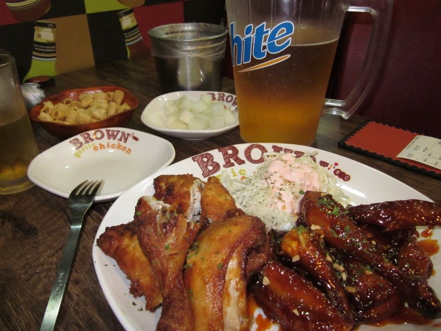 中途半端な時間に昼飯を食べてしまったから、がっつり晩飯を食らう気力もありません。 とりあえず荷物をホテルに置いてから生ビールを飲むぞ~!っと思って入ったのが、たぶん店の漫画ちっくな絵から判断してバーベキューチキン屋さん?。