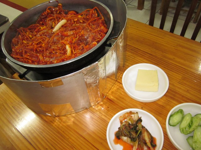 とりあえず、マッコリとたこの甘辛炒めを注文しました。 う、うまい、このたこの軟らかいこと・・・、マシッソヨ~を連発しちゃいました。
